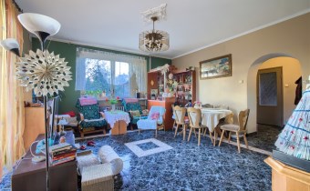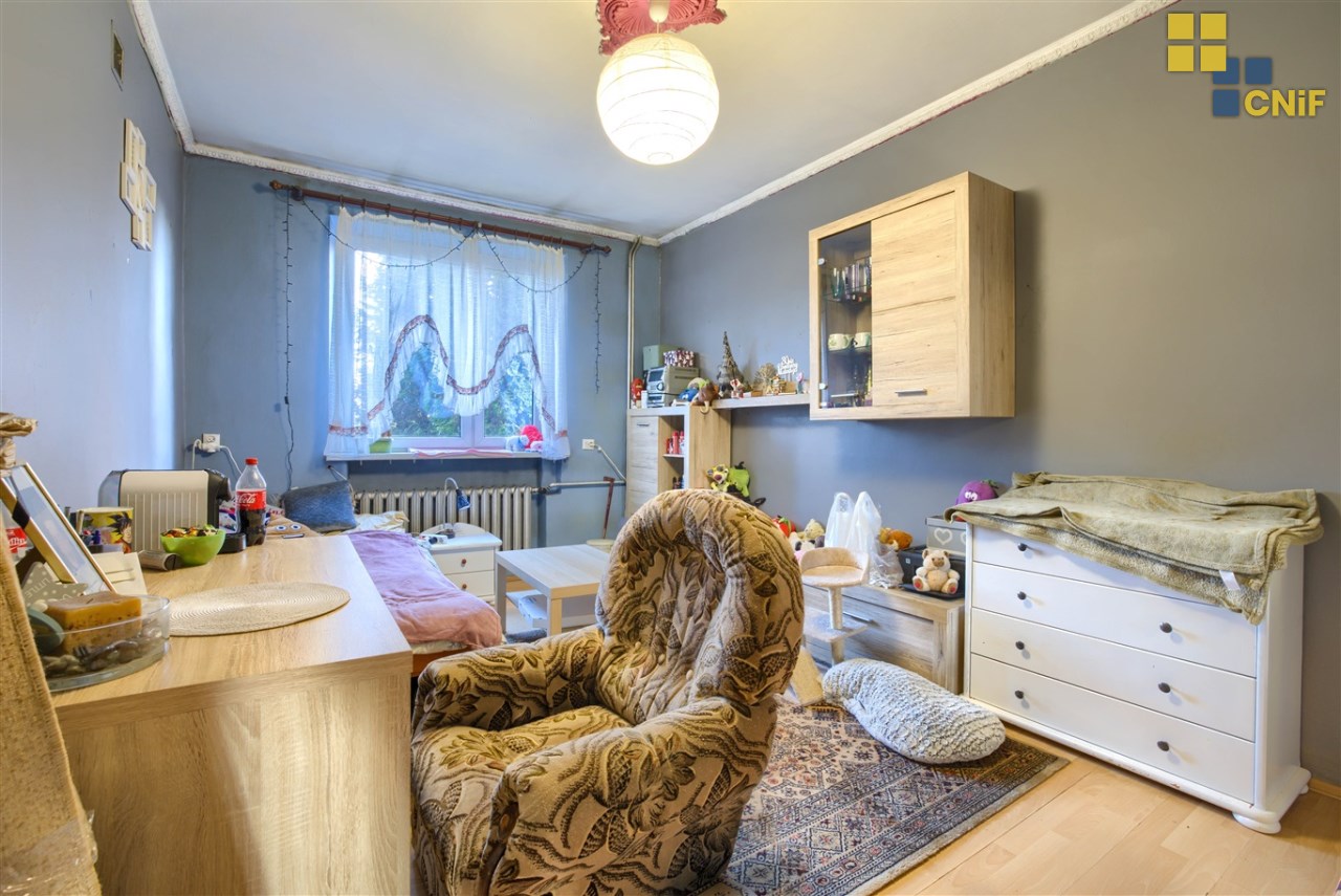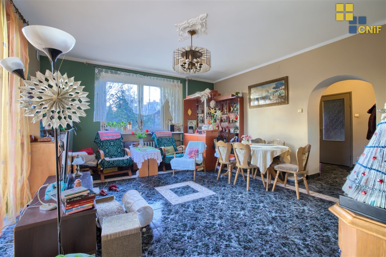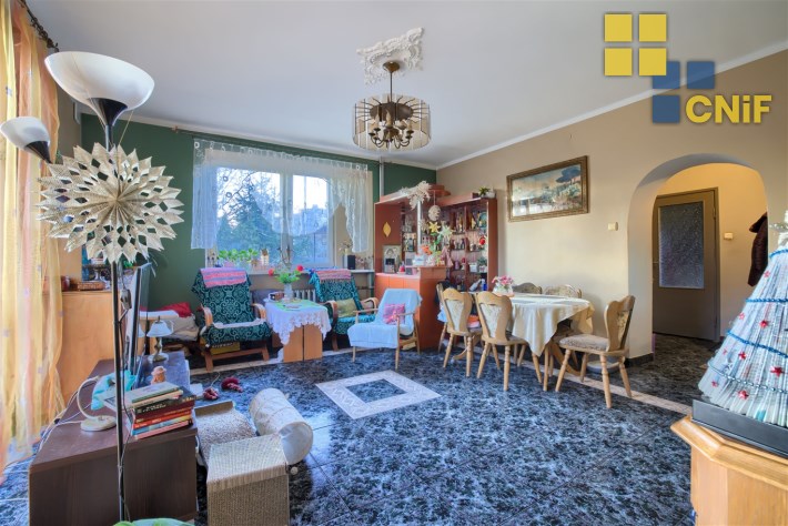 Na sprzedaż UDZIAŁ W NIERUCHOMOŚCI - parter domu jednorodzinnego o powierzchni 80 m2 - 2 pokoje, kuchnia, łazienka, przedpokój, z niezależnym wejściem ze wspólnej klatki schodowej. Dodatkowo garaż, piwnica oraz 1/2 budynku znajdującego się we frotowej części działki.