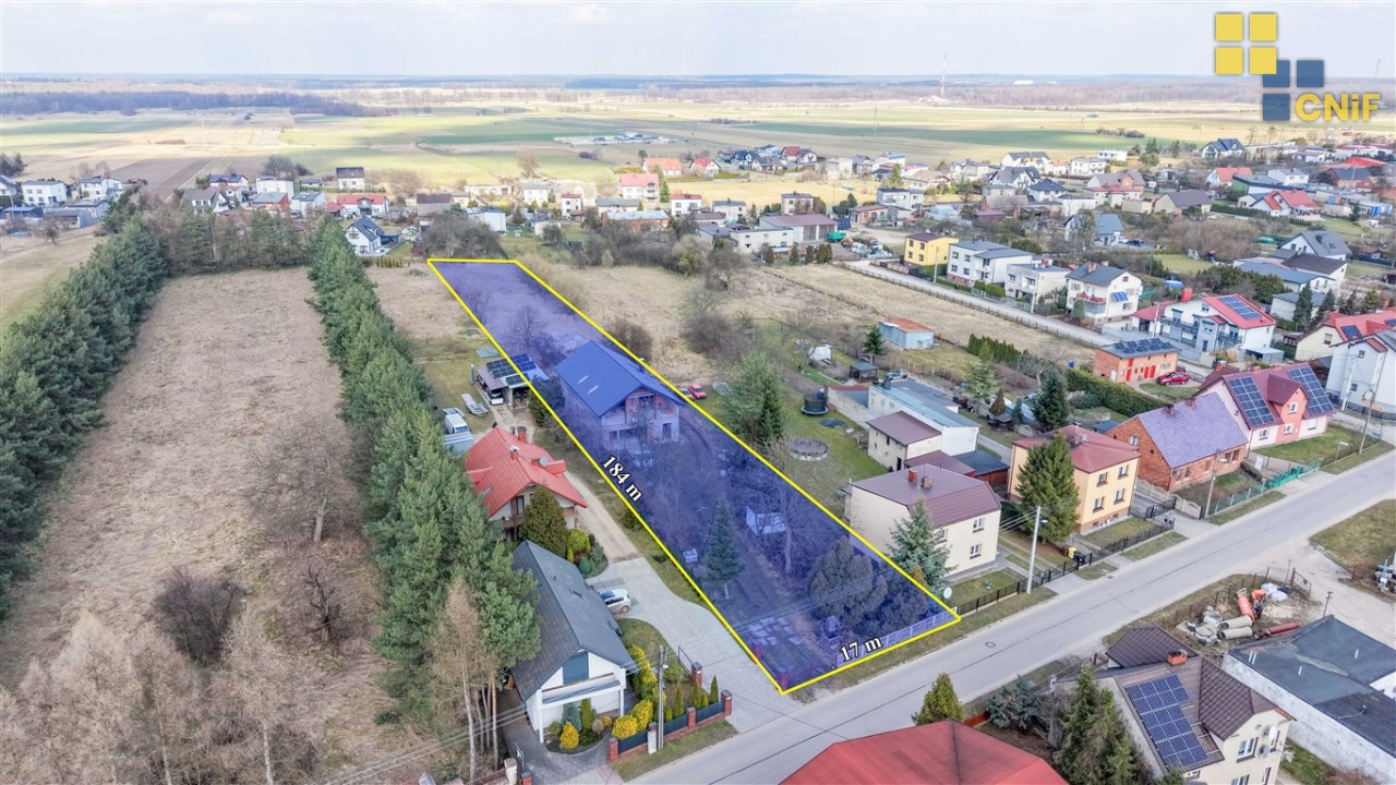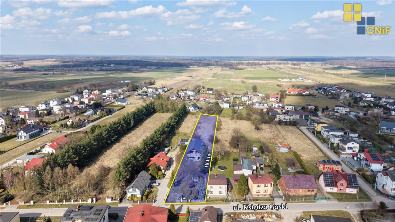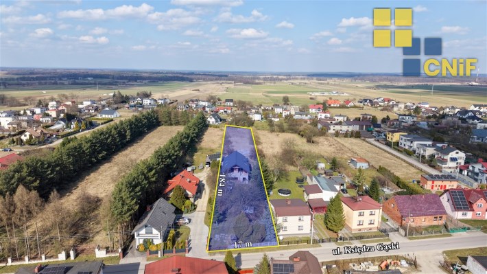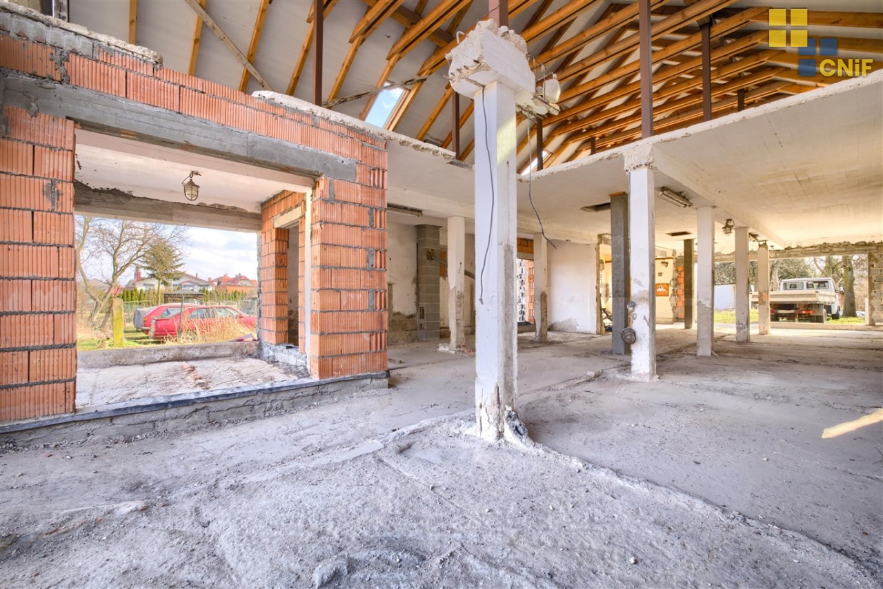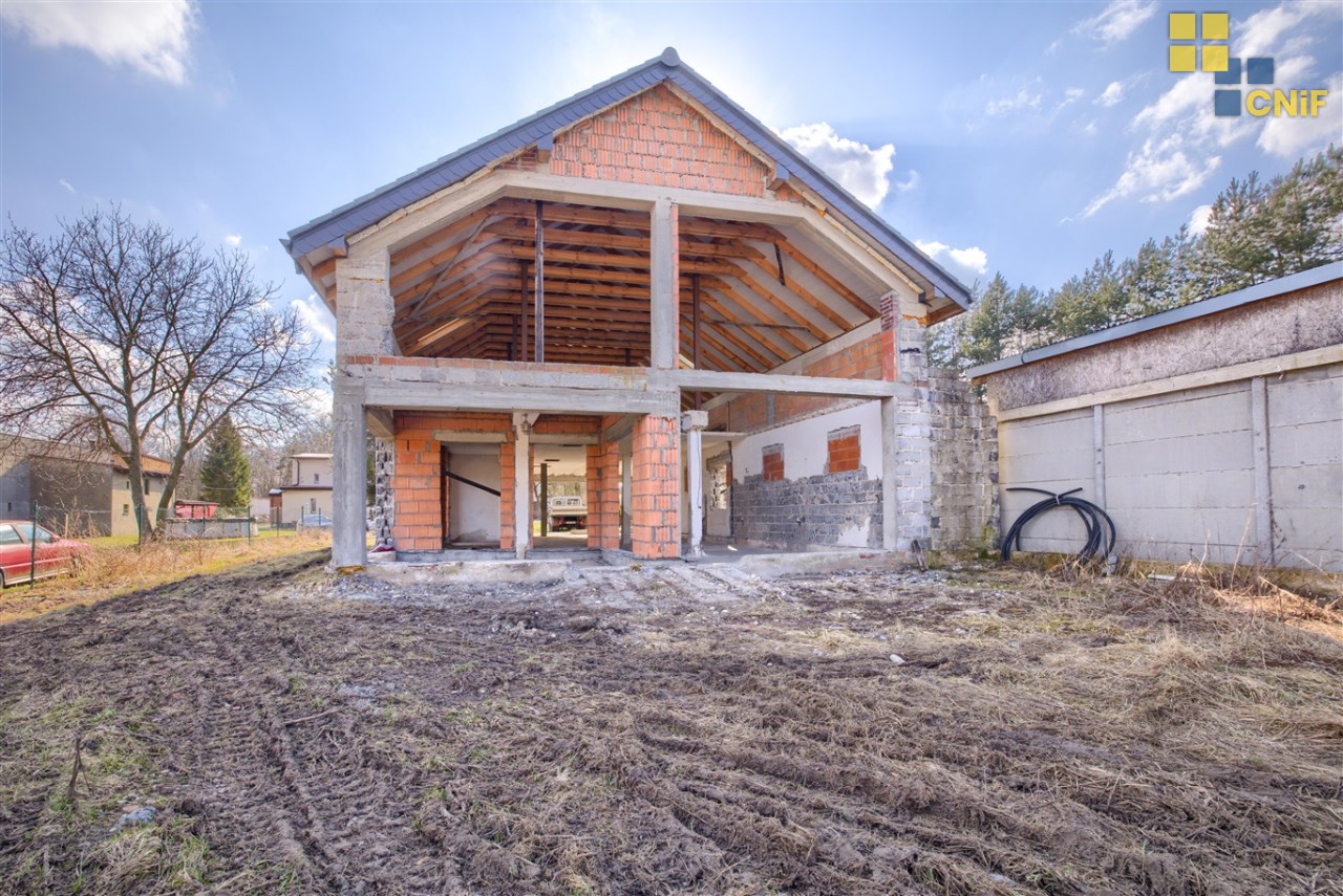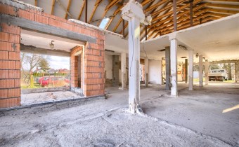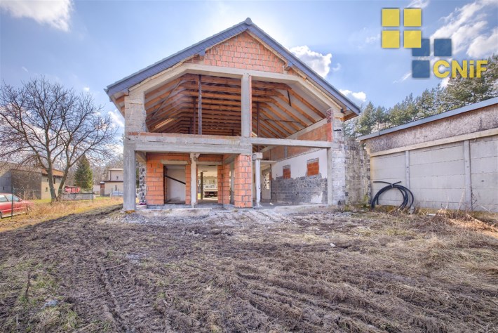 Na sprzedaż rozpoczęta budowa domu jednorodzinnego położonego na dużej działce w spokojnej i zielonej części Koszęcina, przy ul. ks. Gąski.