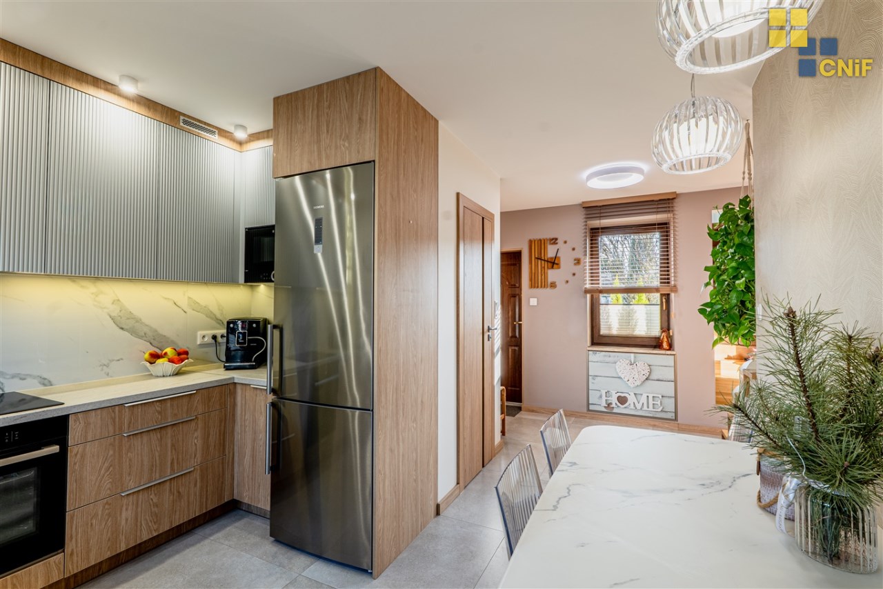To idealna propozycja dla osób szukających komfortowego, nowoczesnego wnętrza w świetnej lokalizacji, który łączy ciszę i prywatność z bliskością miejskiej infrastruktury. Wnętrza są jasne, przytulne i bardzo funkcjonalne – dom robi doskonałe wrażenie już od pierwszego wejścia.