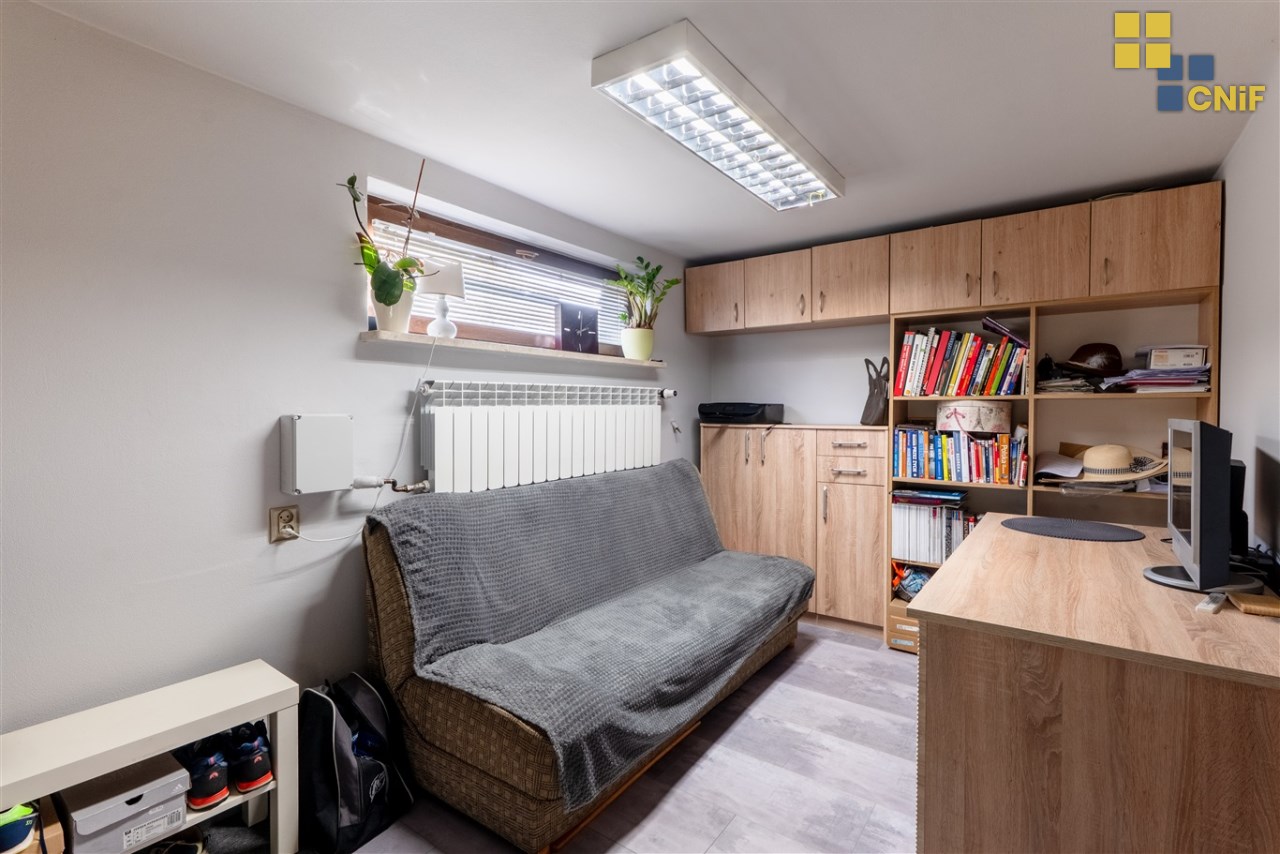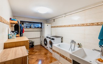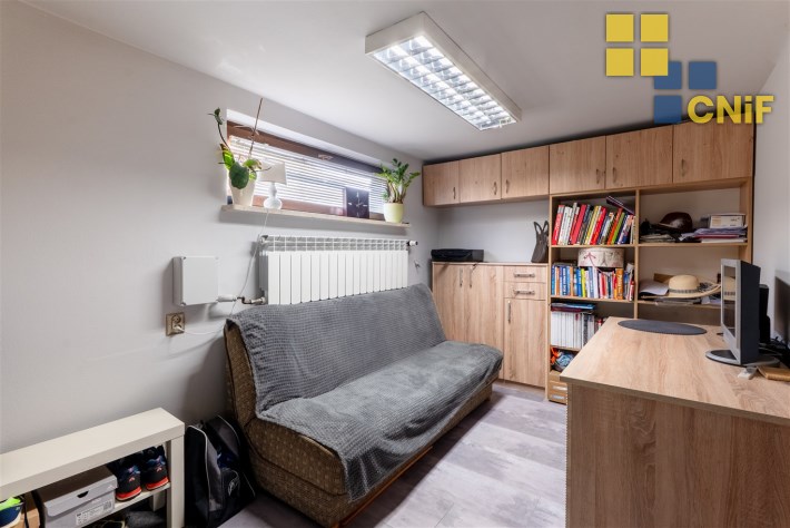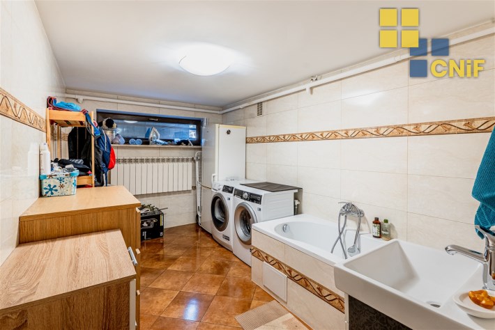 dodatkowo ok. 55–60 m² powierzchni w piwnicy (garaż + pomieszczenia gospodarcze i biurowe, pralnia, spiżarnia),