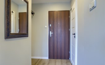 Mieszkanie znajduje się w wydzielonym, zabezpieczonym drzwiami korytarzu.