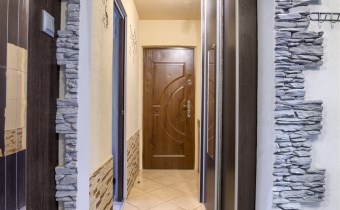 W przedpokoju znajduje się duża szafa w zabudowie oraz szafa narożna będąca dodatkowym miejscem do przechowywania.