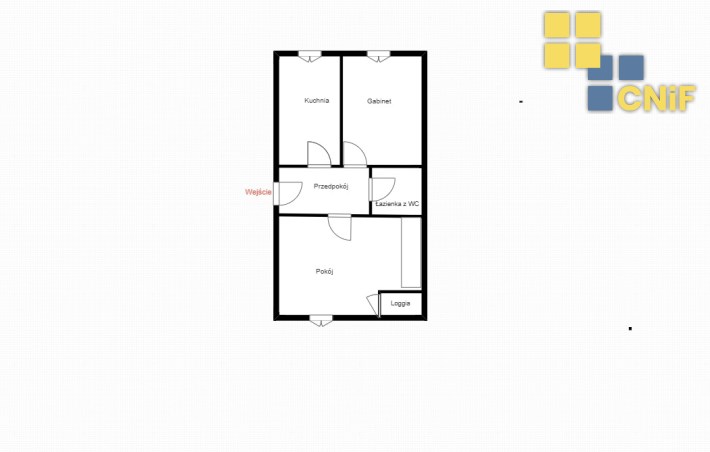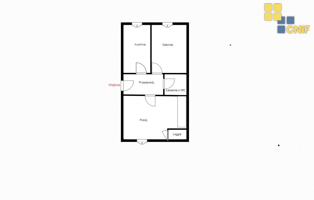 W większym pokoju znajduje się  duża wnęka, którą wykorzystano na zabudowanie pojemnej szafy. Alternatywnie można przenieść kuchnię we wnękę ( bliskie sąsiedztwo łazienki i instalacji) wówczas kuchnia będzie ew. trzecim pokojem.