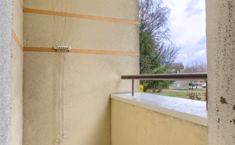 Mieszkanie posiada balkon (loggia) z widokiem na zielony teren.