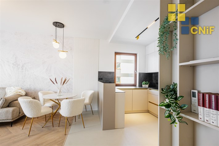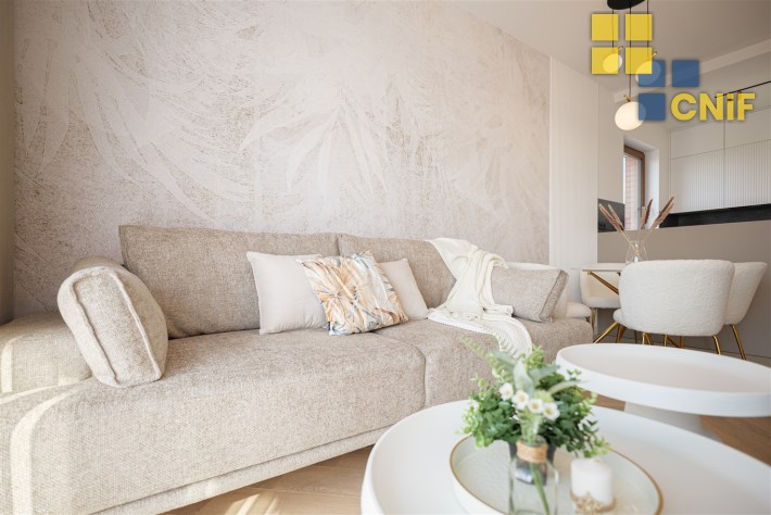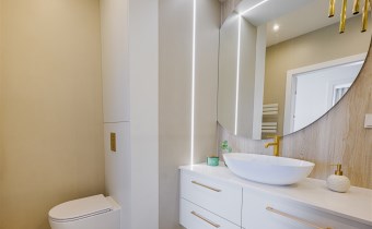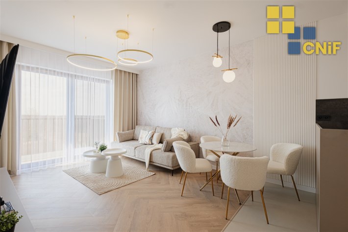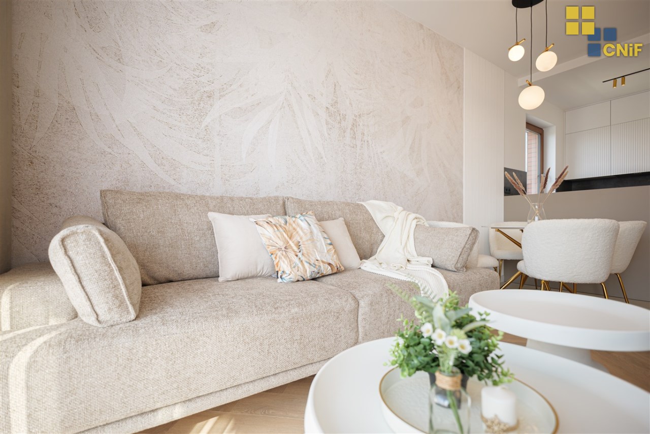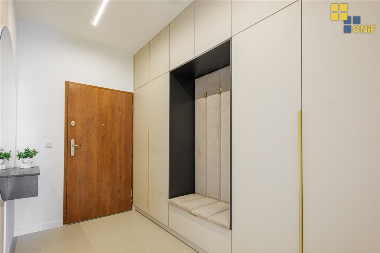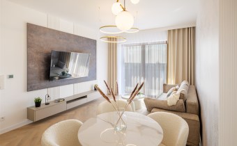Apartament został wykończony w wysokim standardzie, z dużą dbałością o detale i spójność stylistyczną. Wnętrza są eleganckie, przytulne i bardzo jasne, co tworzy wyjątkową atmosferę komfortu.