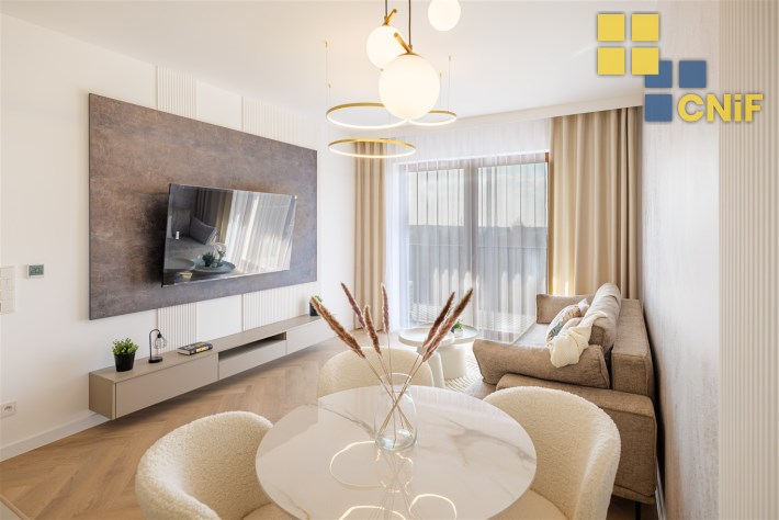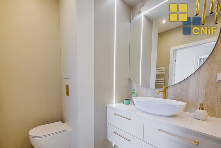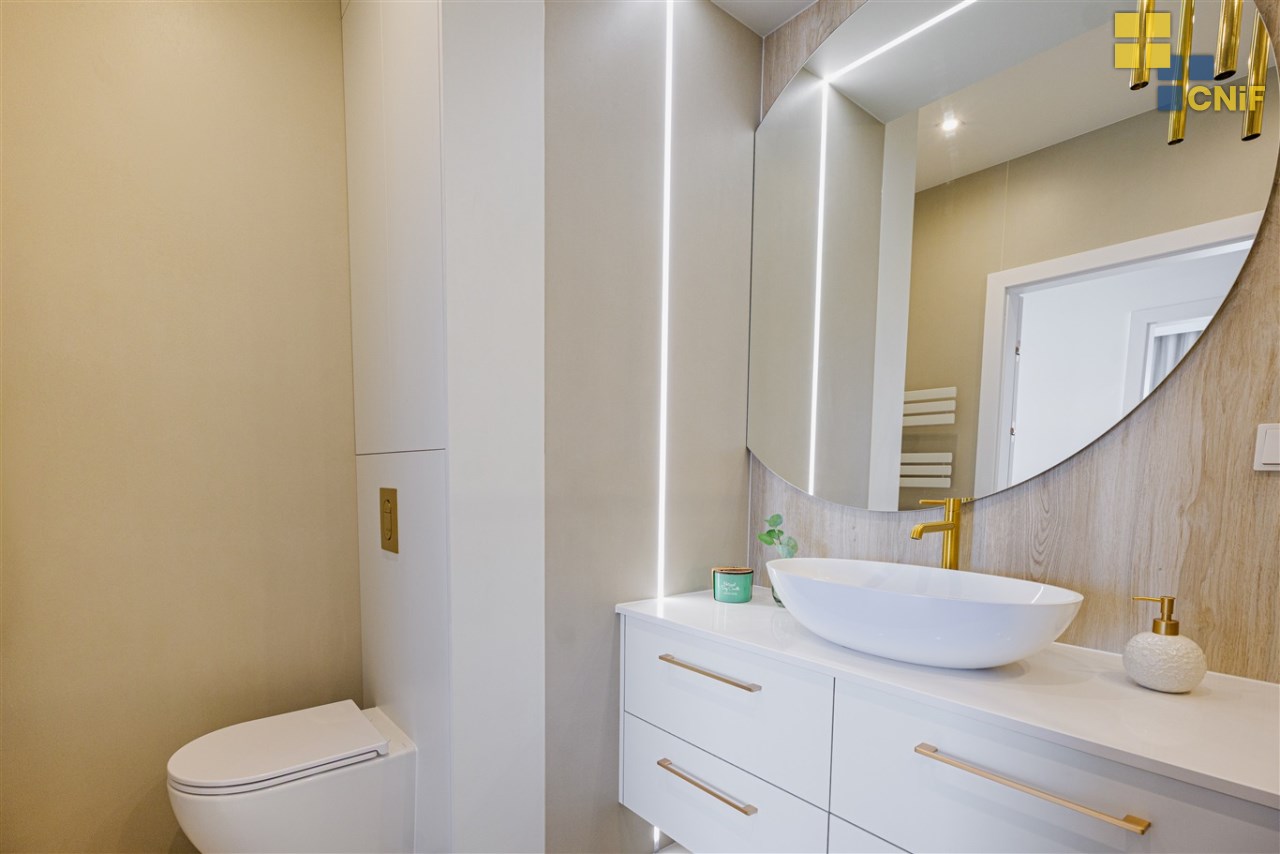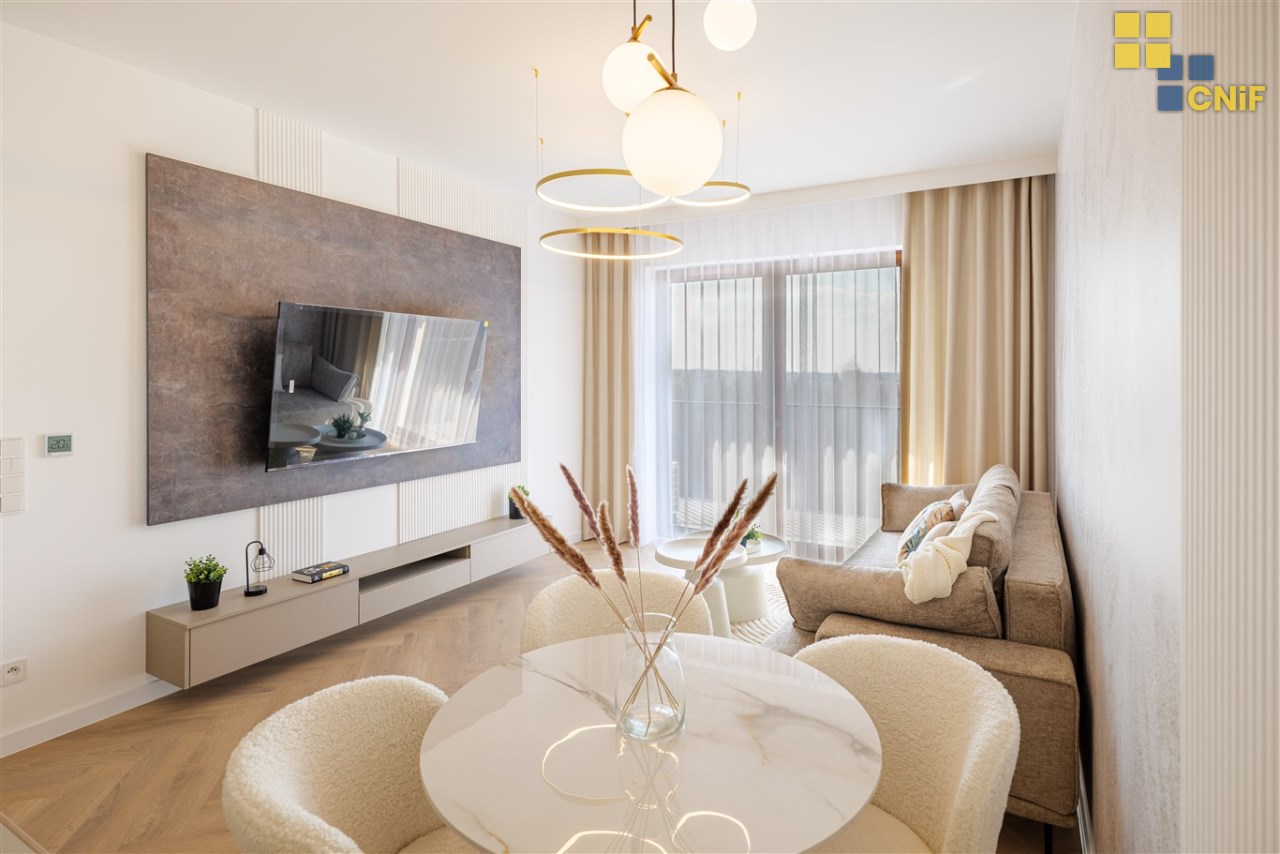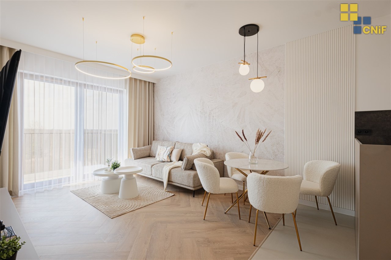 Apartament został wykończony w wysokim standardzie, z dużą dbałością o detale i spójność stylistyczną. Wnętrza są eleganckie, przytulne i bardzo jasne, co tworzy wyjątkową atmosferę komfortu.