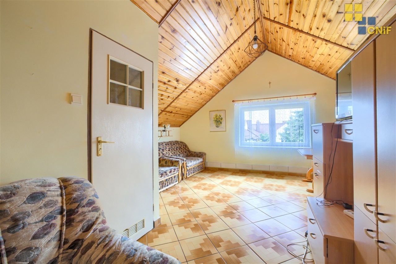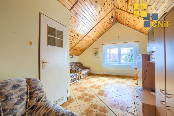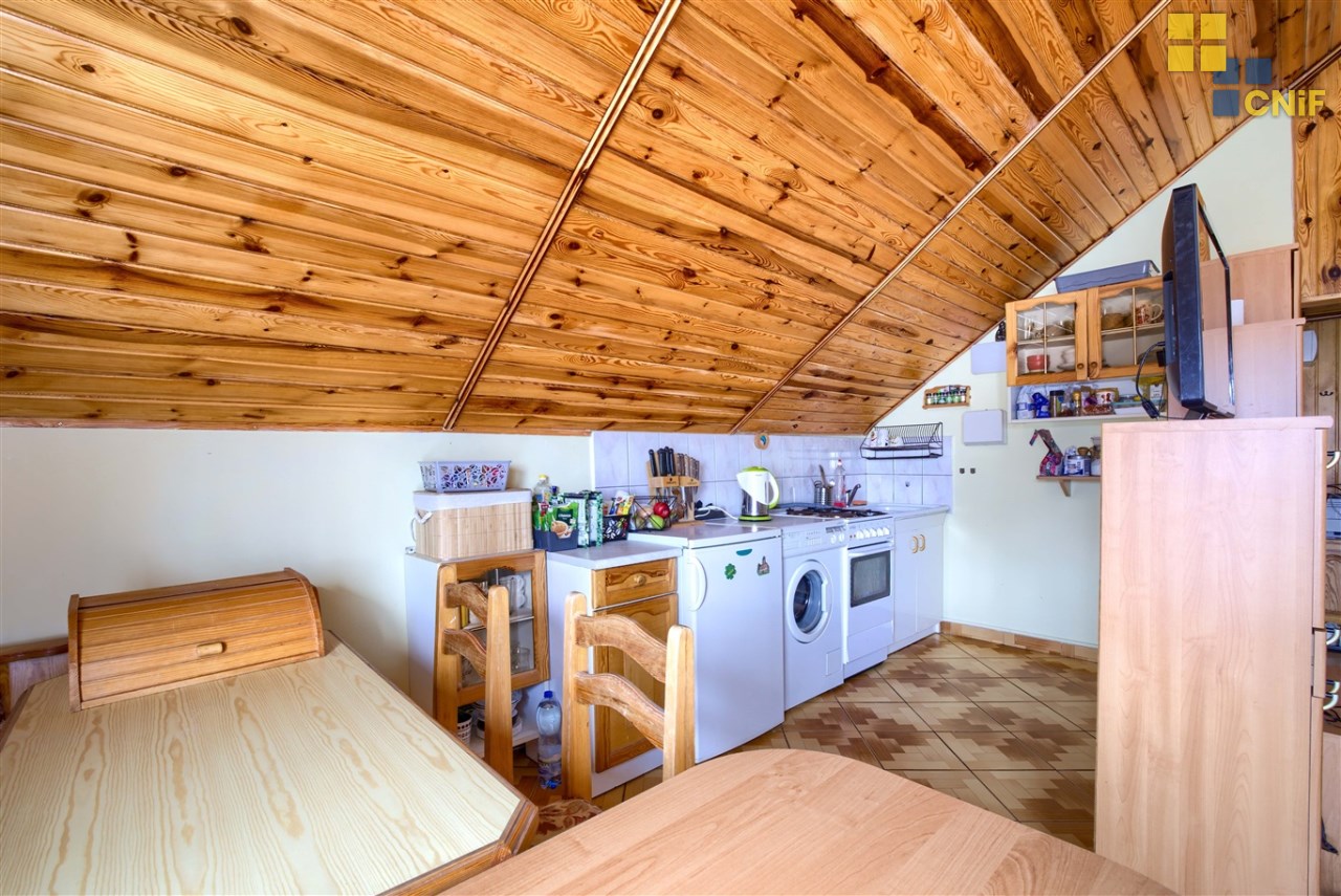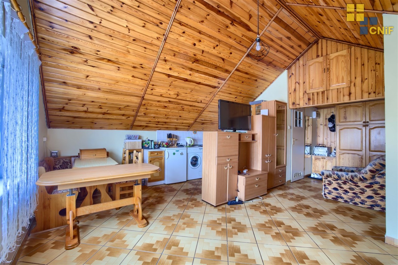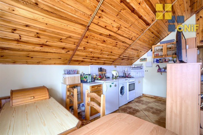 Mieszkanie o pow. 36,5 m2 położone na 2 piętrze/poddaszu, składające się z dużego pokoju z aneksem kuchennym, łazienki i dodatkowego pomieszczenia typu garderoba/komórka.