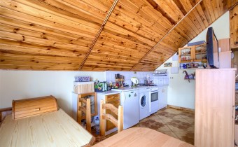 Umeblowanie widoczne na zdjęciach. W kuchni pralka, kuchenka, lodówka.
