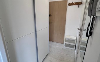 Lokal składa się z dużego, jasnego pokoju z wyjściem na przestronny balkon, z którego rozciąga się przyjemny widok na zieleń. Osobna kuchnia z oknem zapewnia wygodę codziennego użytkowania, a łazienka wyposażona w wannę sprzyja relaksowi po długim dniu. W przedpokoju znajduje się pojemna szafa, oferująca dużo miejsca do przechowywania.