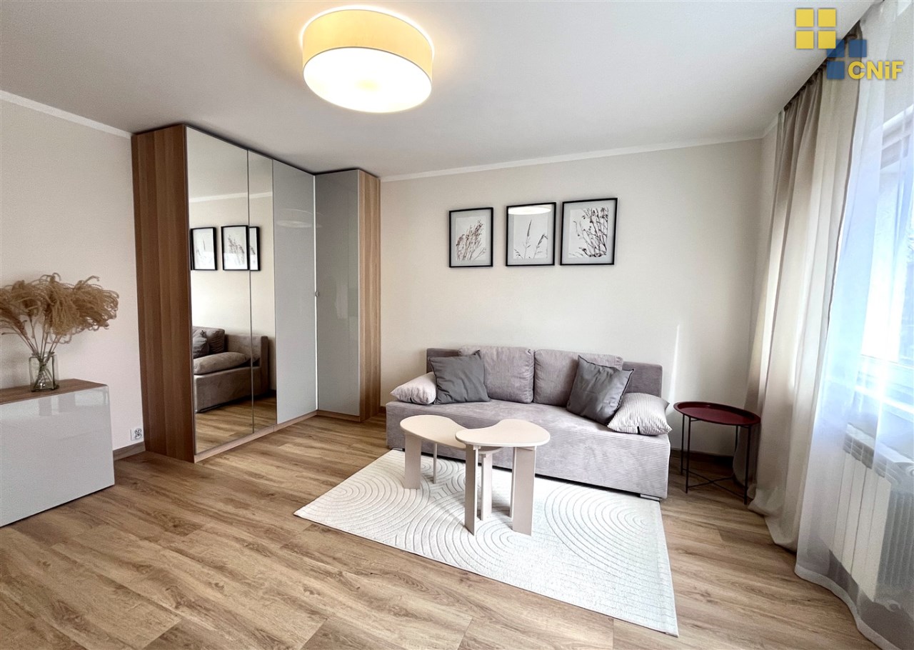 Do wynajęcia nowoczesna kawalerka po generalnym remoncie, położona na 2 piętrze w zadbanym, czteropiętrowym bloku.